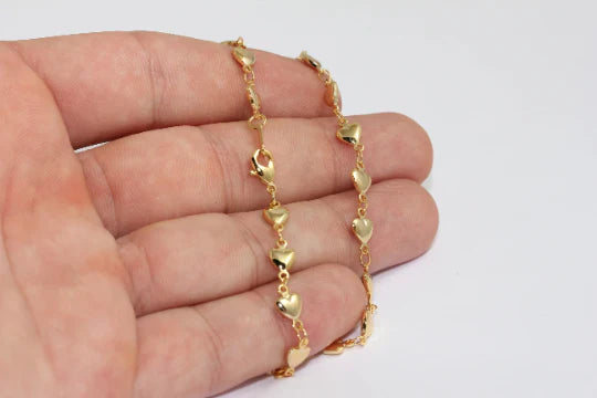 24K Gold Plated Shiny, 10mm Heart Ready Chain. Dimensions: 40cm, - Price per piece. 24K gold plated on brass. A Quality product, resistant to rust and tarnishing. Do not contact with chemicals and perfumes for long-term use. Passed all tests, does not contain harmful materials. Colors may vary depending on screen settings and ambient light.