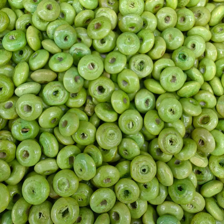 Light Green wooden bead. The package contains approximately 180 beads. Colors may vary according to monitor and light settings. Wooden beads can be used in accessory designs such as necklaces bracelets earrings keychains and in hobbies like macrame decorative items etc.