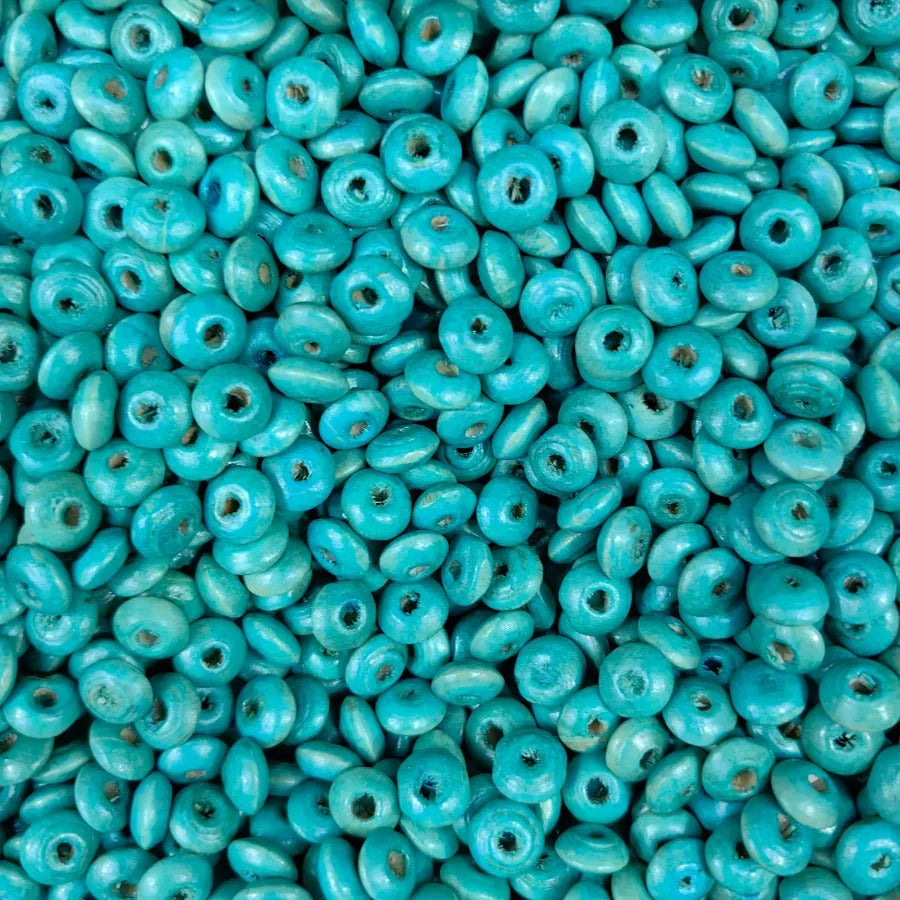 Turquoise wooden bead. The package contains approximately 180 beads. Colors may vary according to monitor and light settings. Wooden beads can be used in accessory designs such as necklaces bracelets earrings keychains and in hobbies like macrame decorative items etc.