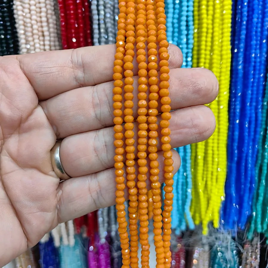 This is a 3 mm oval crystal. It is sold in a single strand and each strand contains approximately 145 - 152 beads. Crystal beads can be used in the design of necklaces bracelets and anklets. These crystal beads are made of glass and have a bright appearance due to their faceted cuts that reflect light. Avoid contact with chemicals and perfumes for long-lasting use. It does not contain any harmful materials. Colors may vary depending on screen settings and ambient lighting.