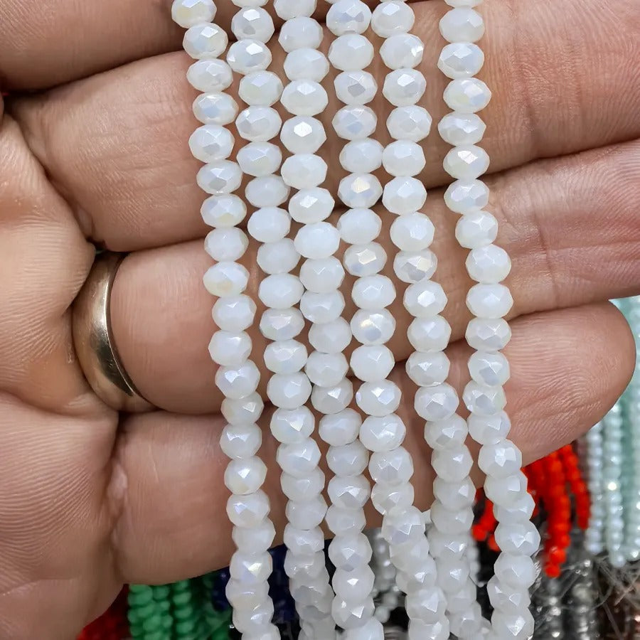 This is a 3 mm oval crystal. It is sold in a single strand and each strand contains approximately 145 - 152 beads. Crystal beads can be used in the design of necklaces bracelets and anklets. These crystal beads are made of glass and have a bright appearance due to their faceted cuts that reflect light. Avoid contact with chemicals and perfumes for long-lasting use. It does not contain any harmful materials. Colors may vary depending on screen settings and ambient lighting.