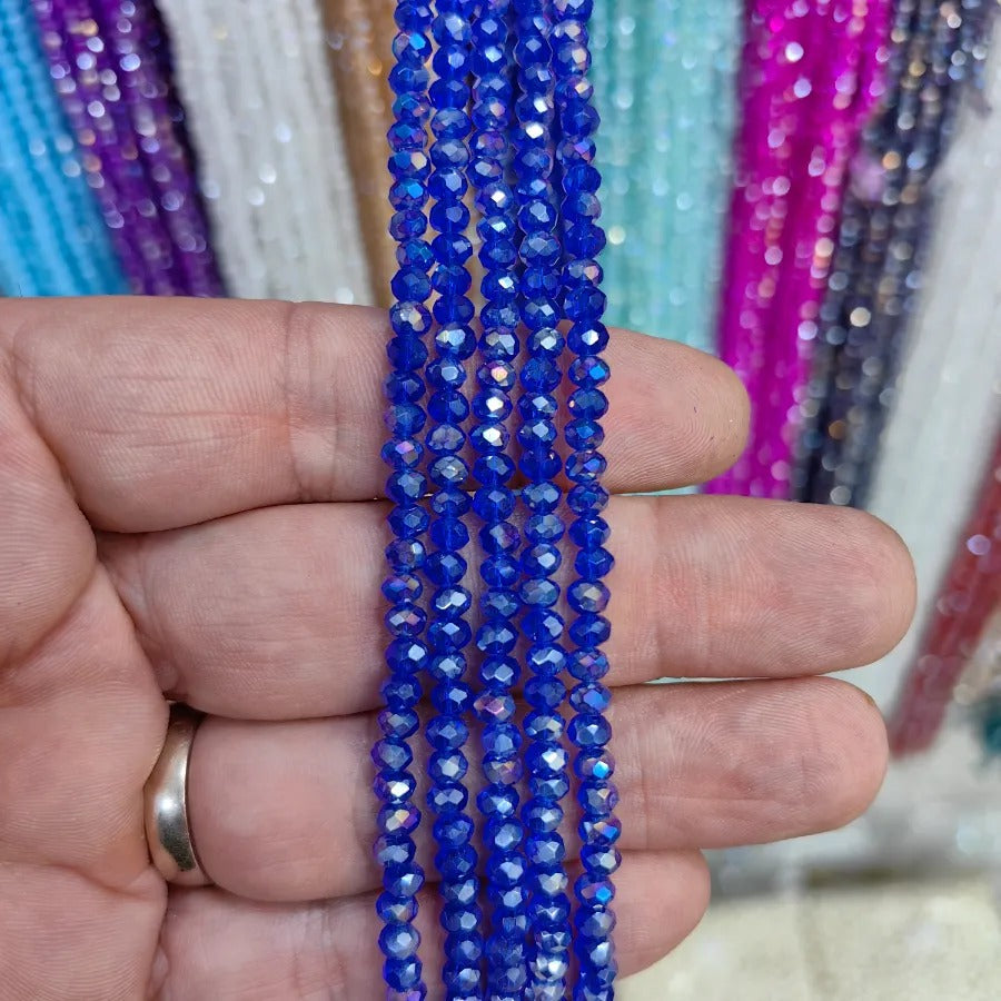 This is a 3 mm oval crystal. It is sold in a single strand and each strand contains approximately 145 - 152 beads. Crystal beads can be used in the design of necklaces bracelets and anklets. These crystal beads are made of glass and have a bright appearance due to their faceted cuts that reflect light. Avoid contact with chemicals and perfumes for long-lasting use. It does not contain any harmful materials. Colors may vary depending on screen settings and ambient lighting.
