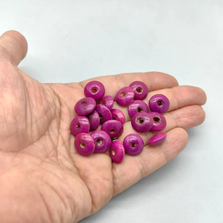 Pink color wooden bead. The package contains approximately 48-52 beads. Colors may vary according to monitor and light settings. Wooden beads can be used in accessory designs such as necklaces bracelets earrings keychains and in hobbies like macrame decorative items etc.