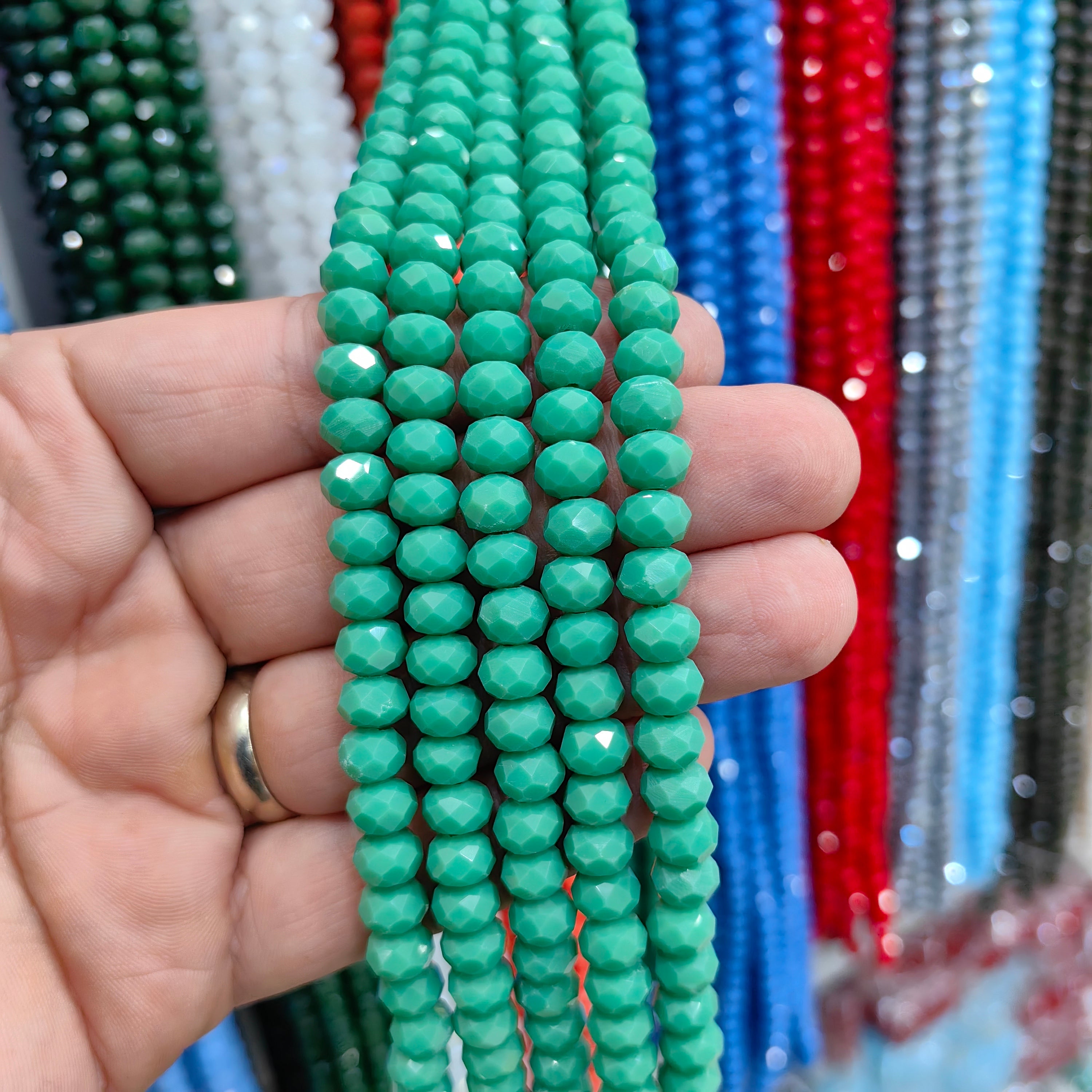 8mm Round Cut Chinese Crystal Beads. 8mm Oval Crystal. Sold in a single strand. Each strand contains approximately 68 - 72 beads. Crystal beads can be used in necklace bracelet and anklet designs. Crystal beads are made from glass. Their faceted cuts reflect light giving them a shiny appearance. Avoid contact with chemicals and perfume for long-term use. Contains no harmful materials. Colors may vary depending on screen settings and ambient light.