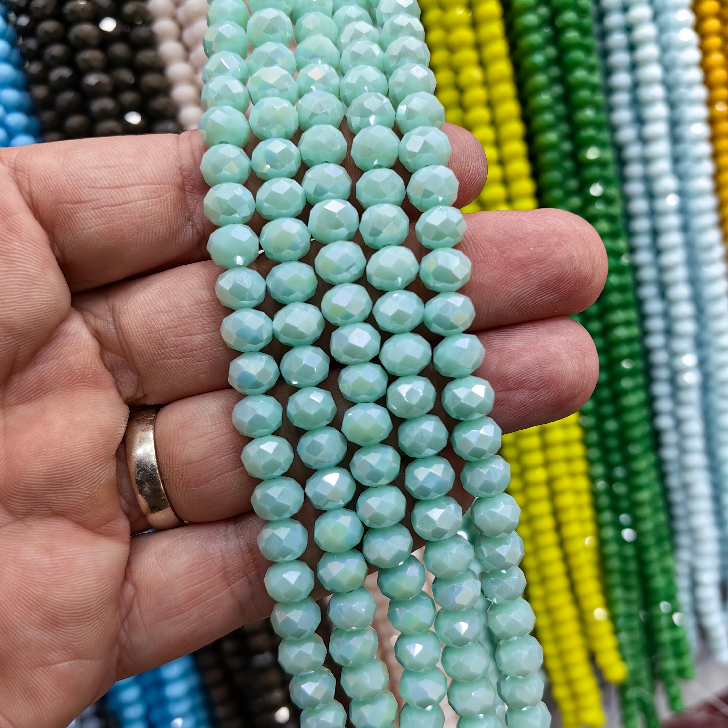 8mm Round Cut Chinese Crystal Beads. 8mm Oval Crystal. Sold in a single strand. Each strand contains approximately 68 - 72 beads. Crystal beads can be used in necklace bracelet and anklet designs. Crystal beads are made from glass. Their faceted cuts reflect light giving them a shiny appearance. Avoid contact with chemicals and perfume for long-term use. Contains no harmful materials. Colors may vary depending on screen settings and ambient light.