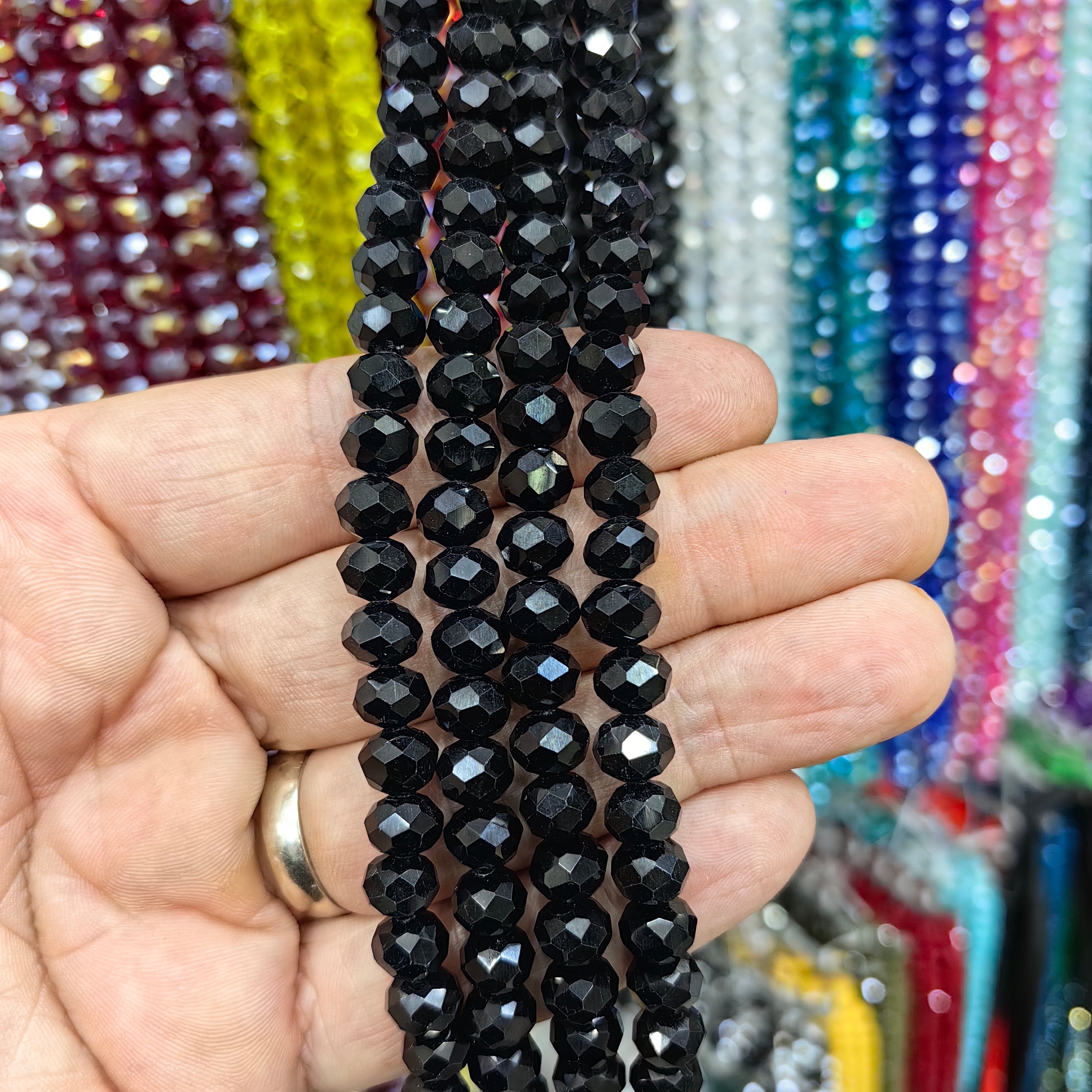 8mm Round Cut Chinese Crystal Beads. 8mm Oval Crystal. Sold in a single strand. Each strand contains approximately 68 - 72 beads. Crystal beads can be used in necklace bracelet and anklet designs. Crystal beads are made from glass. Their faceted cuts reflect light giving them a shiny appearance. Avoid contact with chemicals and perfume for long-term use. Contains no harmful materials. Colors may vary depending on screen settings and ambient light.
