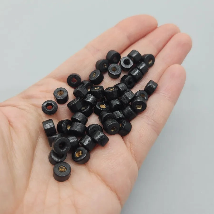 Black color wooden bead. The package contains approximately 125-135 beads. Colors may vary according to monitor and light settings. Wooden beads can be used in accessory designs such as necklaces bracelets earrings keychains and in hobbies such as macrame decorative items etc.