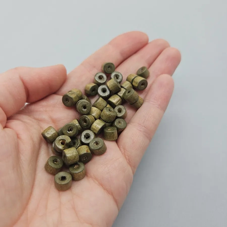 Green color wooden bead. The package contains approximately 125-135 beads. Colors may vary according to monitor and light settings. Wooden beads can be used in accessory designs such as necklaces bracelets earrings keychains and in hobbies such as macrame decorative items etc.