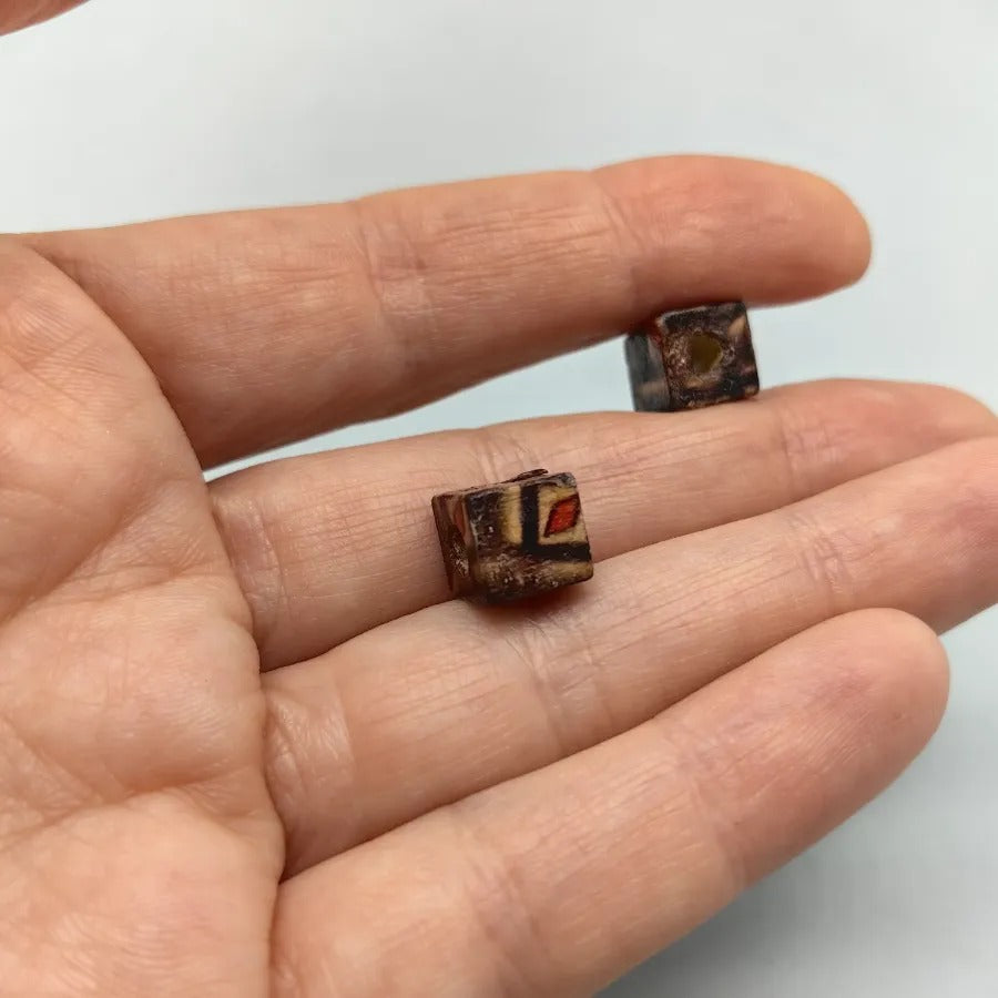 8x9mm Banded Patterned Dark Brown Cube Wooden Bead WB0175