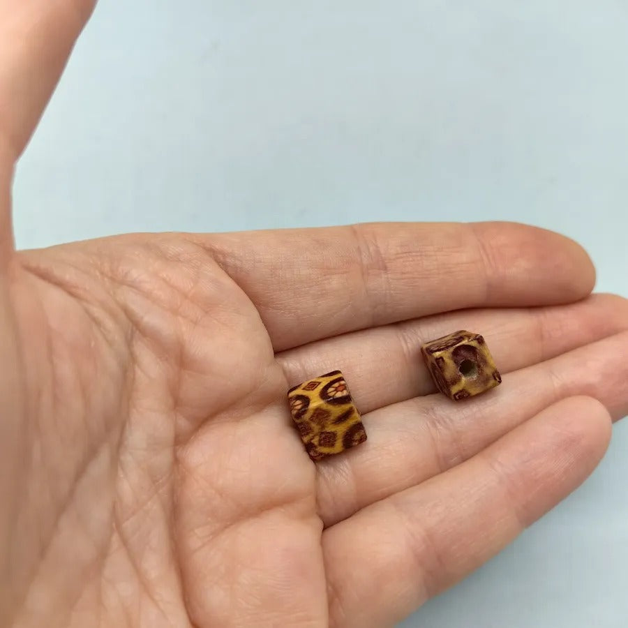 9mm Patterned Brown Cube Wooden Bead WB0180