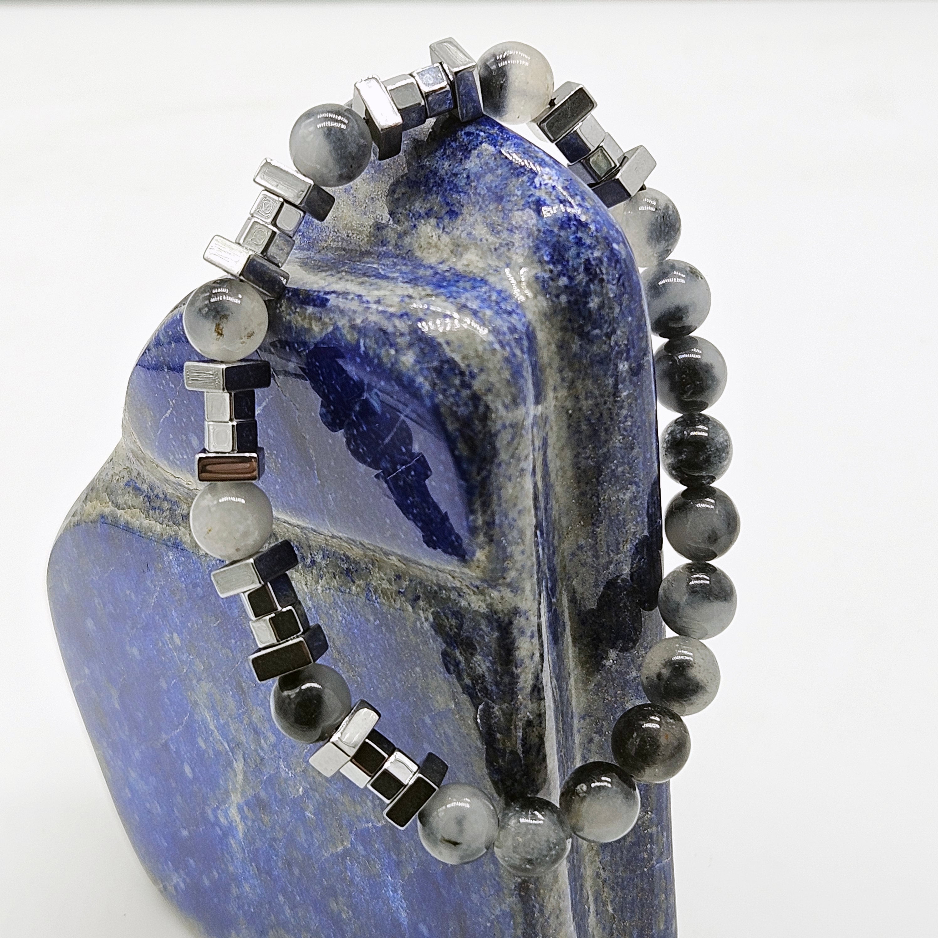 Men's Beaded Bracelet, Quartz, Hematitte Natural Stone Bracelet 8mm, Gemstone Bracelet for Men, Stacking Bracelet, Gift for Him,
