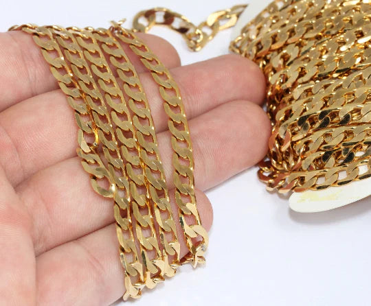 24 Carat Gold Plated Faceted Crushed Rope Border Chain. Dimensions: 6x9mm PRICE FOR 1 METER. 24 carat gold plated on brass. A Quality product resistant to rust and tarnishing. Do not contact with chemicals and perfumes for long-term use. Passed all tests does not contain harmful materials. Colors may vary depending on screen settings and ambient light.
