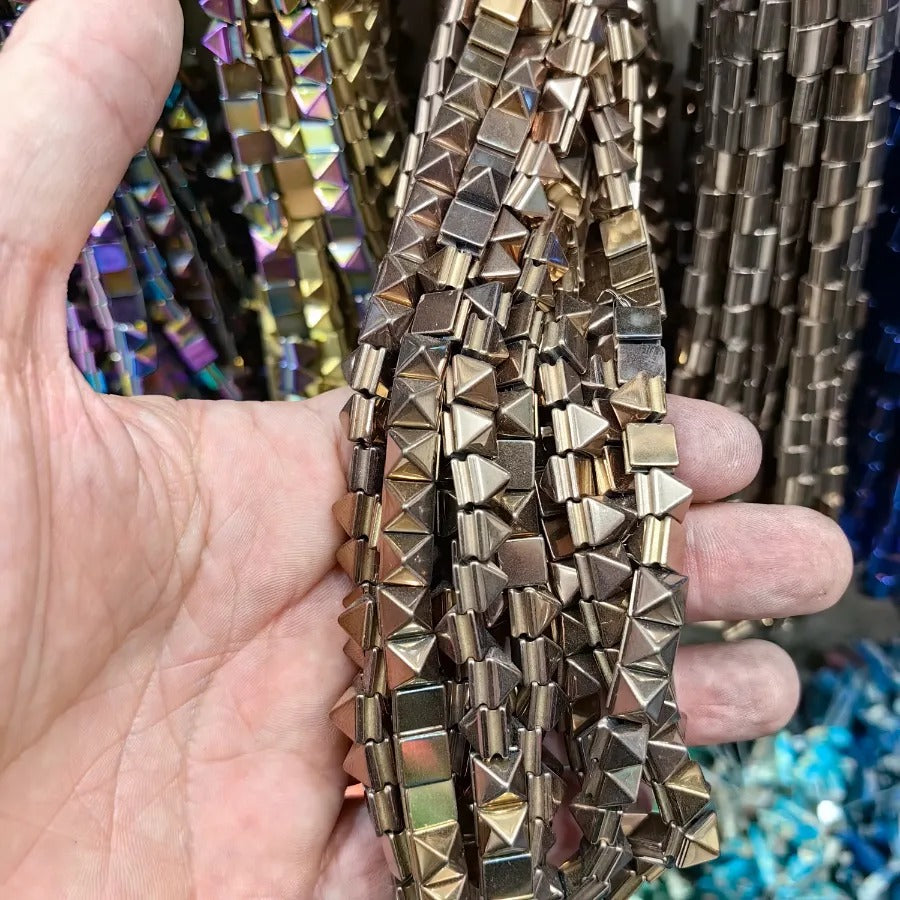 8 mm Copper Color Square Pyramid Makrome Hematite Natural Stone DTH0064-Copper