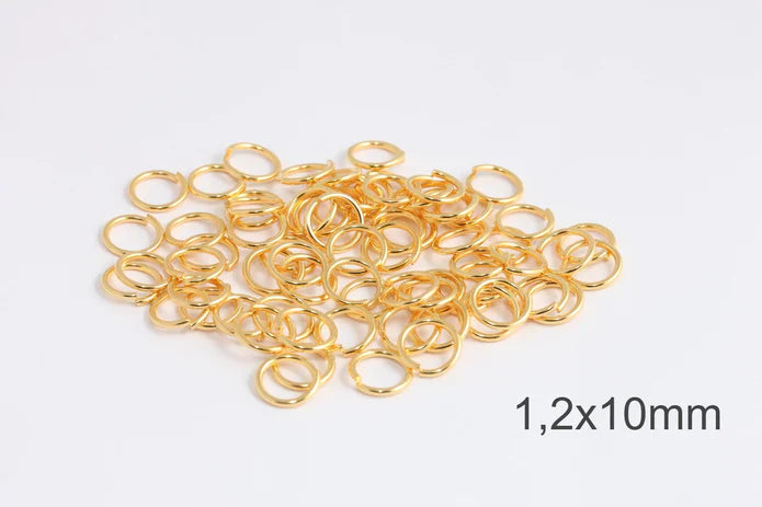 24 Carat Gold Plated Necklace, Anklet, Bracelet Shiny Metal Ring, Metal Ring. Sold in packages of 50 pieces. Dimensions: 10mm Thickness: 1.2mm. 24 carat gold plated on brass. A Quality product, resistant to rust and tarnishing. Do not contact with chemicals and perfumes for long-term use. Passed all tests, does not contain materials harmful to health. Colors may vary depending on screen settings and ambient light.