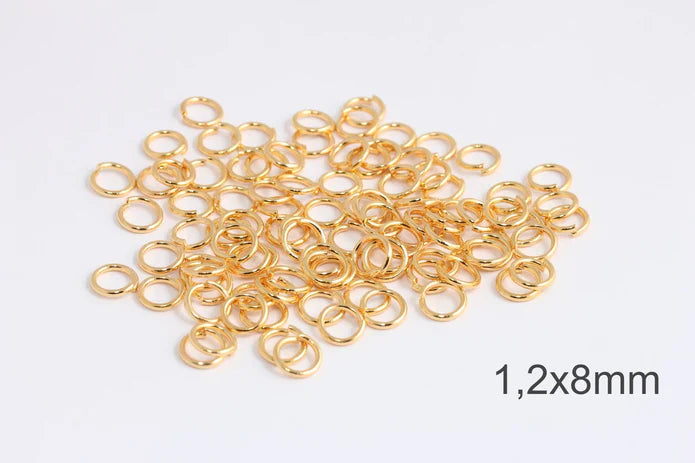24 Carat Gold Plated Necklace, Anklet, Bracelet Shiny Small Metal Ring, Metal Ring. Sold in packages of 50 pieces. There are 50 products in 1 package. Dimensions: 8mm Thickness: 1.2 mm. 24 carat gold plated on brass. A Quality product, resistant to rust and tarnishing. Do not contact with chemicals and perfumes for long-term use. Passed all tests, does not contain materials harmful to health. Colors may vary depending on screen settings and ambient light.