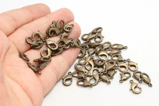Antique Bronze 15 mm Parrot Clip. Dimensions: 15 mm. Sold in packages of 5. A Quality product, resistant to rust and tarnishing. For long-term use, do not contact with chemicals and perfumes. Passed all tests, does not contain harmful materials. Colors may vary depending on screen settings and ambient light.