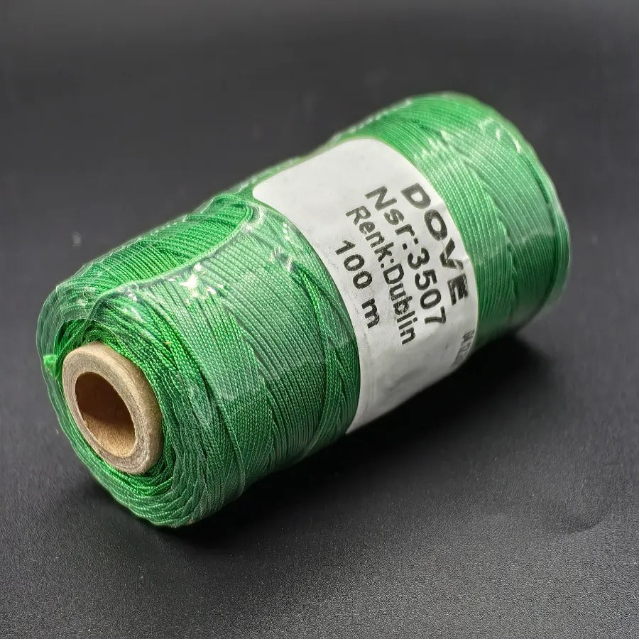 Dove Grass Green - Dublin Parachute Macrame Cord - Length: 100 Meters Thickness: 0.8mm - Price per unit. Extra Strong No Stretching or Fading. Product color may vary depending on screen settings and ambient lighting.