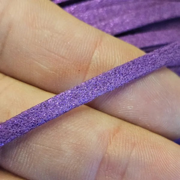4mm Purple Glitter Cashmere Suede Faux Leather can be used in bracelet and jewelry designs. The price is for 5 meters. It is of high quality does not fade does not stretch and is specially produced. Our products are not made from scrap PVC faux leather; they are made from first-class high-quality PU faux leather. It contains no harmful substances and has passed all chemical tests. Colors may vary depending on screen settings and ambient light. For long-lasting use avoid contact with chemicals liquids and perfumes.