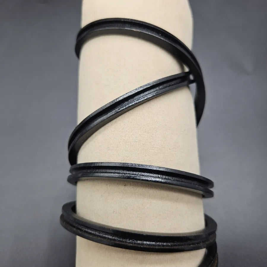 4mm Black Grooved Genuine Leather. Made from real leather. Suitable for bracelet and jewelry designs. Price per meter. High quality does not fade does not stretch specially produced. Contains no harmful substances and has passed all chemical tests. Colors may vary depending on screen settings and ambient lighting. Avoid contact with chemicals liquids and perfumes for long-term use.