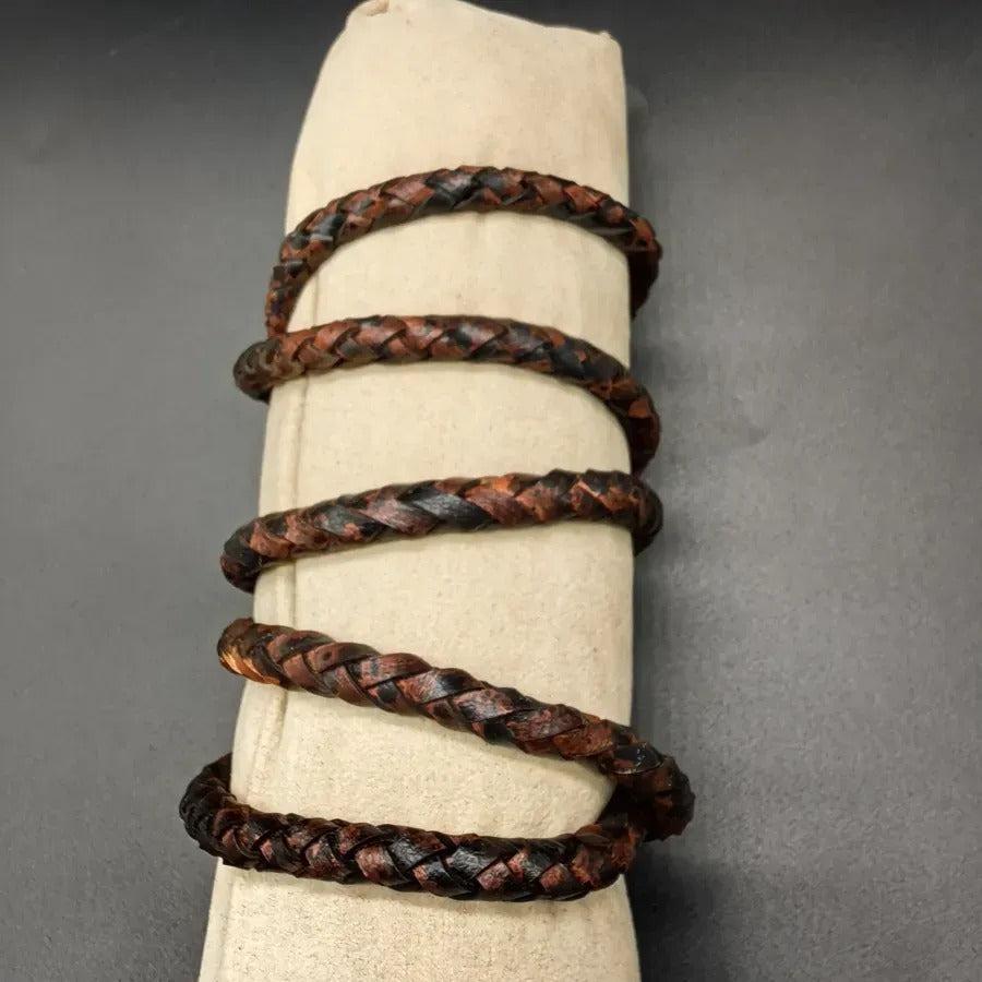 6-strand Special Black Brown Braid Variegated Genuine Leather. Made from real leather. Suitable for bracelet and jewelry designs. Price per meter. High quality does not fade does not stretch specially produced. Contains no harmful substances and has passed all chemical tests. Colors may vary depending on screen settings and ambient lighting. Avoid contact with chemicals liquids and perfumes for long-term use.