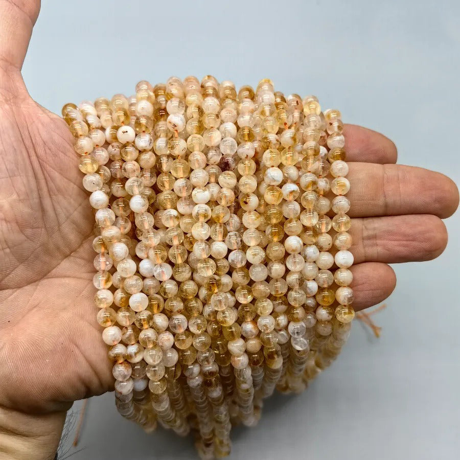 10 mm Citrine Round Cut Natural Stone Strand. Price is for the strand. Each strand contains approximately 40 stones. Natural stones may have different patterns veins and colors depending on their source. Colors may vary slightly due to lighting and camera settings.