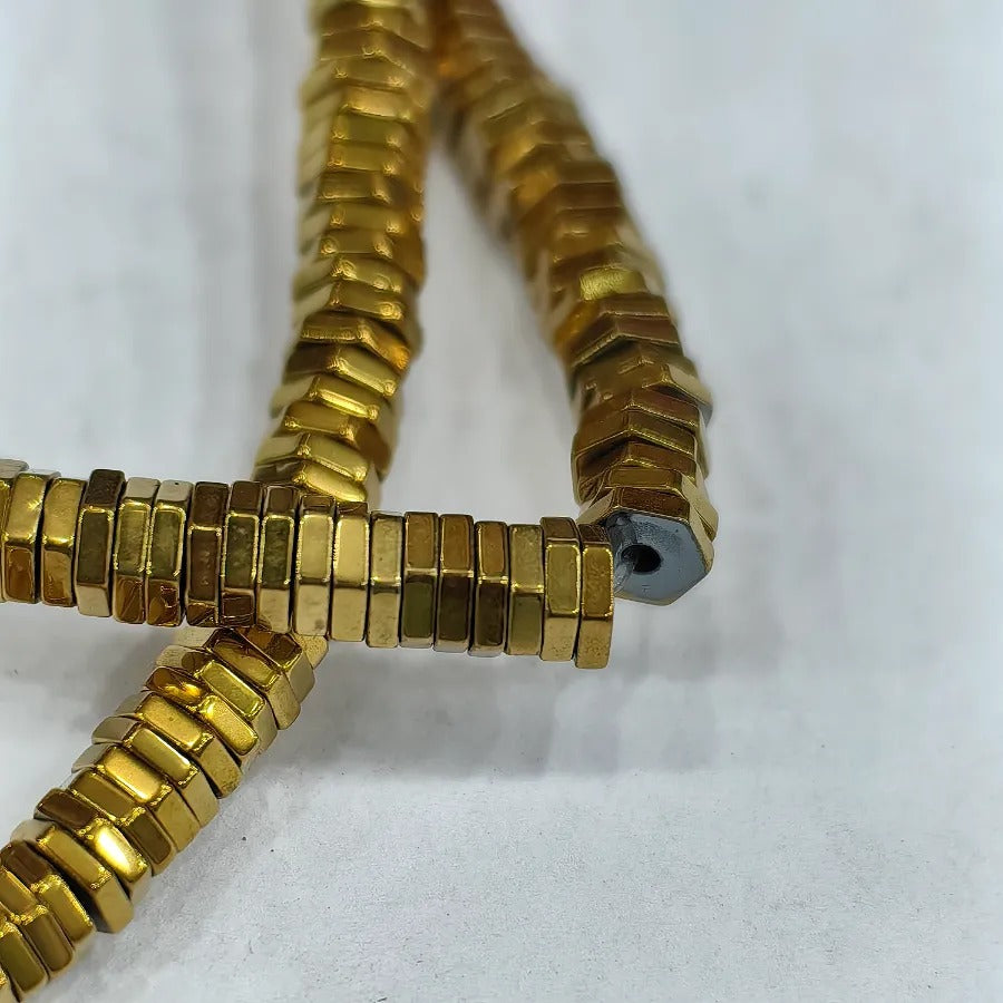 1x4 mm Gold Yellow Threaded Cut Hematite Natural Stone DTH0035-Gold