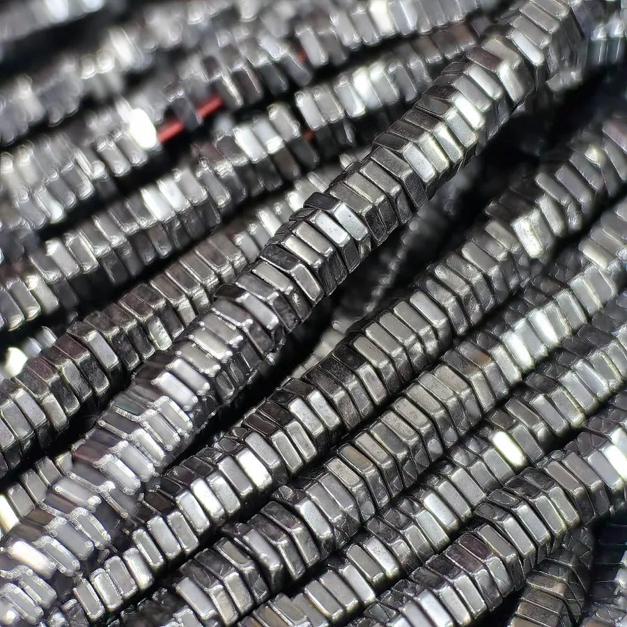 4 mm Smoke Threaded Cut Hematite Natural Stone.Dimensions: 4 mm x 1 mm.Sold in strands.Each strand contains approximately 370 hematite stones.It is a natural hematite stone.Hematite is a shiny natural stone with a metallic appearance, believed to affect the root chakra.It is thought to provide energy, courage, and joy to the user while relieving stress.Hematite stones can be used in the design of bracelets, necklaces, and earrings.