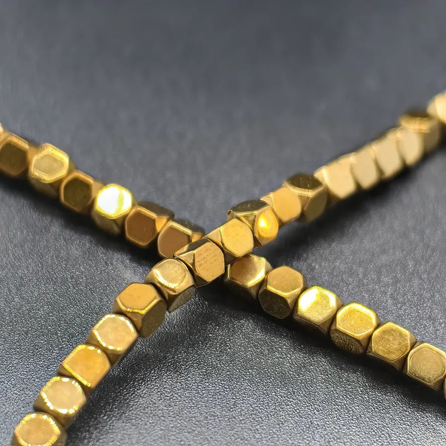 3x3 mm Gold Yellow Rounded Cube Hematite Natural Stone DTH0040-Gold