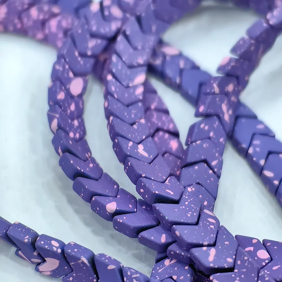 6 mm Matte Blue Patterned Chevron Cut Hematite Natural Stone.Dimensions: 3 mm x 6 mm.Sold in strands.Each strand contains approximately 100 hematite stones.It is a natural hematite stone.Hematite is a shiny natural stone with a metallic appearance, believed to affect the root chakra.It is thought to provide energy, courage, and joy to the user while relieving stress.Hematite stones can be used in the design of bracelets, necklaces, and earrings.
