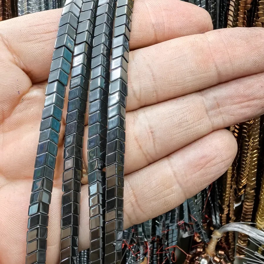 3x6 mm Smoke Herringbone Hematite Natural Stone DTH0108-Gunmetal