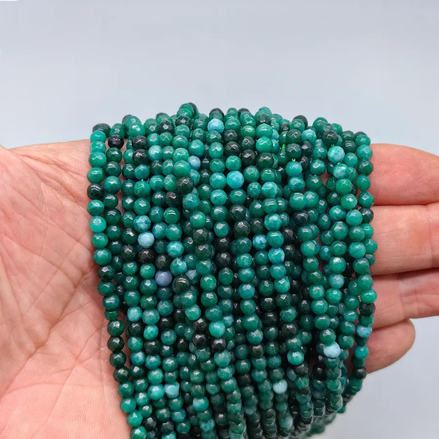 4 mm Faceted Cut Green Agate Natural Stone. Price per strand. Approximately 92 stones per strand. Natural stones may contain different patterns veins and colors depending on their source. Small color differences may occur due to light and camera settings.