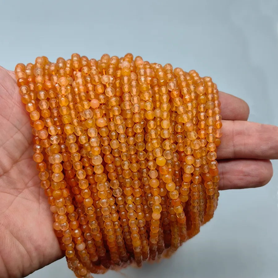 4 mm Faceted Cut Yellow Agate Natural Stone. Price per strand. Approximately 92 stones per strand. Natural stones may contain different patterns veins and colors depending on their source. Small color differences may occur due to light and camera settings.