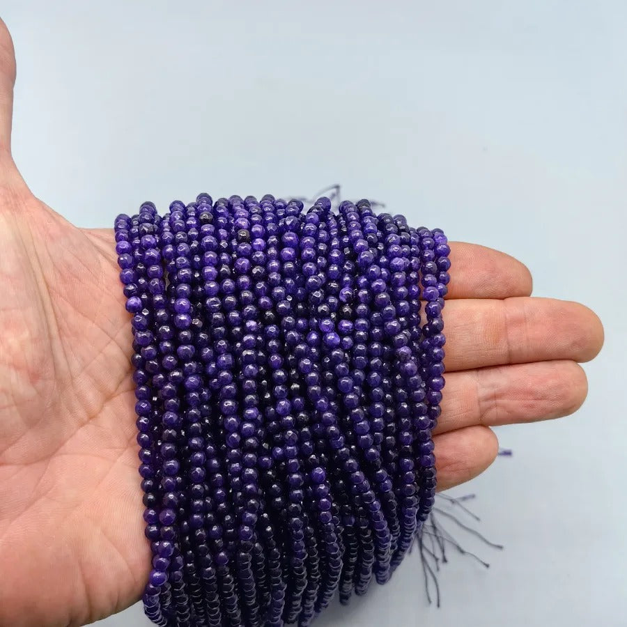 4 mm Faceted Cut Amethyst Jade Natural Stone. Price per strand. Approximately 92 stones per strand. Natural stones may contain different patterns veins and colors depending on their source. Small color differences may occur due to light and camera settings.