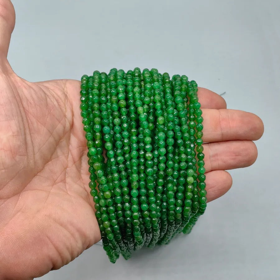 4 mm Faceted Cut Jade Natural Stone. Price per strand. Approximately 92 stones per strand. Natural stones may contain different patterns veins and colors depending on their source. Small color differences may occur due to light and camera settings.