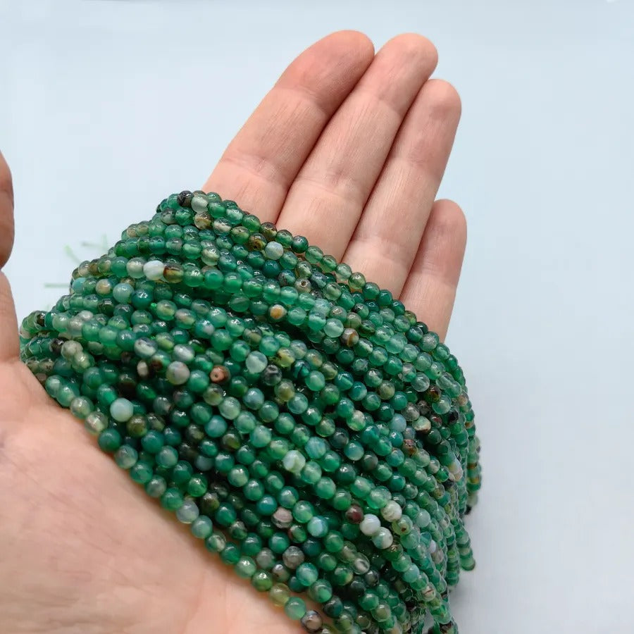 4 mm Faceted Sphere Cut Agate Natural Stone. Price per strand. Approximately 92 stones per strand. Natural stones may contain different patterns veins and colors depending on their source. Small color differences may occur due to light and camera settings.