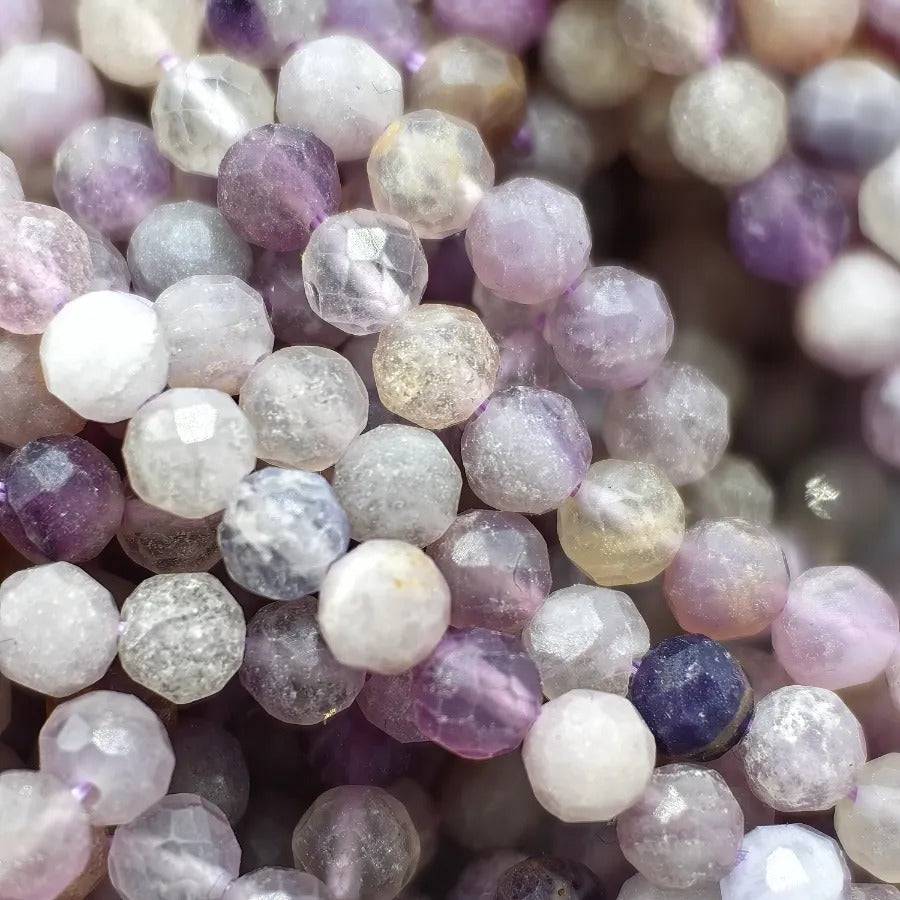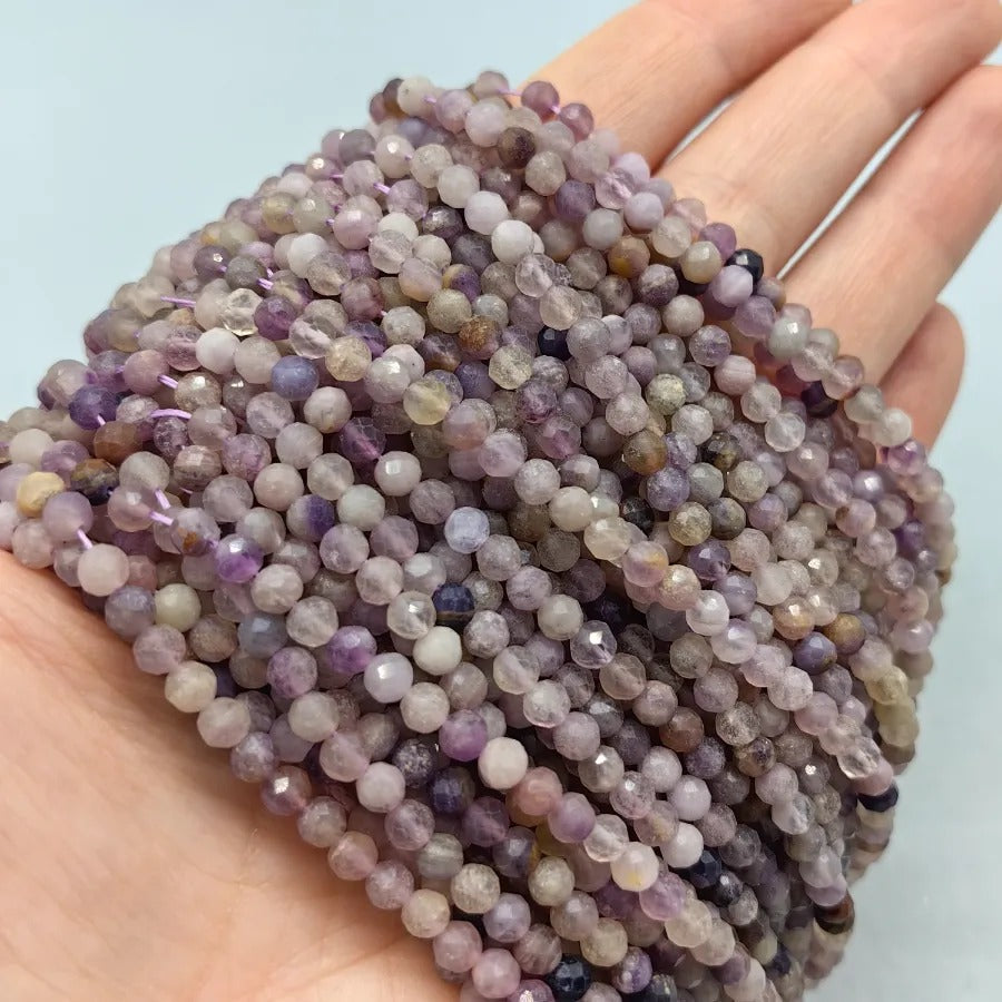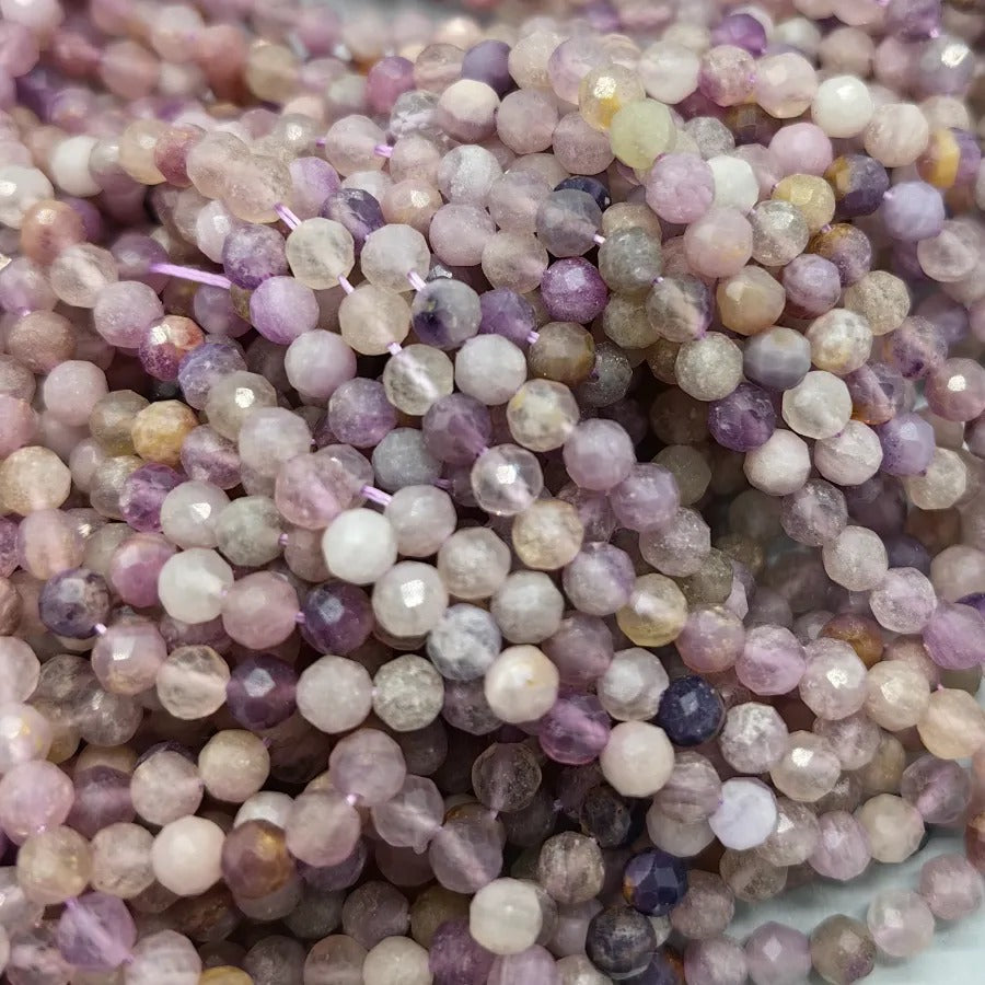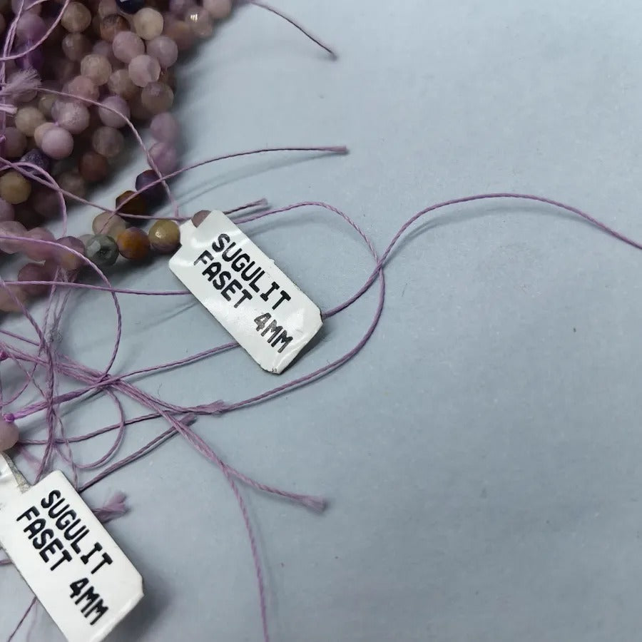 4 mm Sugilite Faceted Sphere Cut Natural Stone Strand. Price per strand. Approximately 105 stones per strand. Natural stones may contain different patterns veins and colors depending on their source. Small color differences may occur due to light and camera settings.