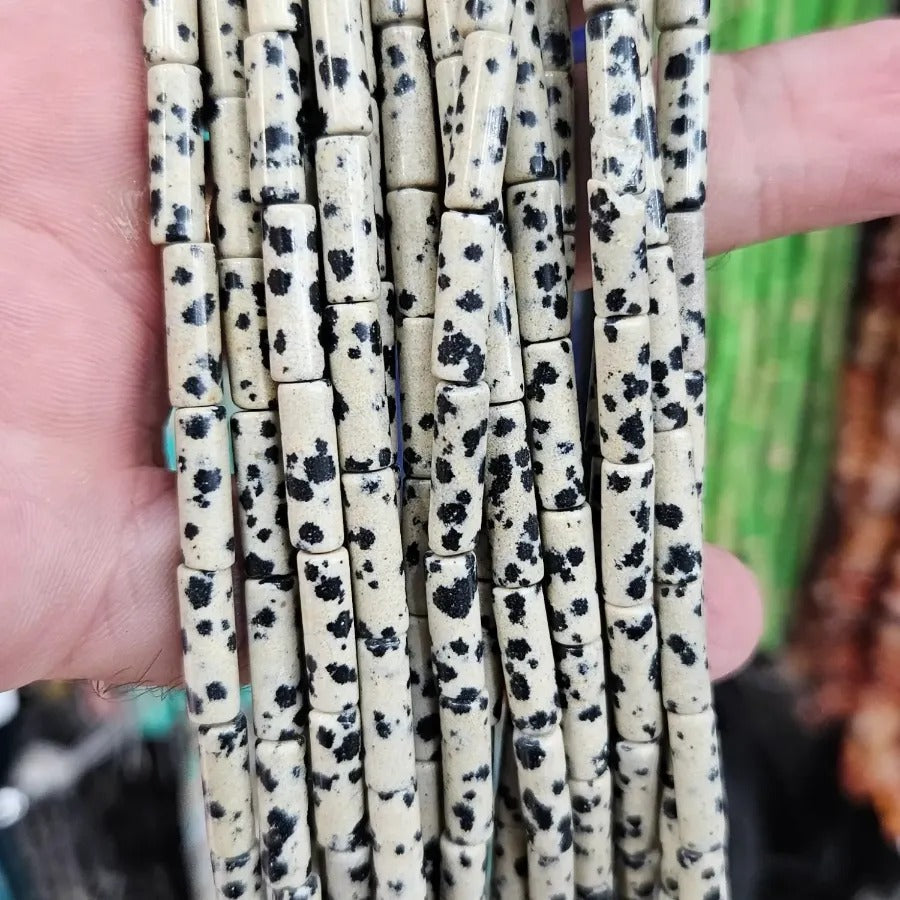 4x14 mm Cylinder Cut Quail Jasper Natural Stone Strand. Price per strand. Approximately 28 stones per strand. Natural stones may contain different patterns veins and colors depending on their source. Small color differences may occur due to light and camera settings.