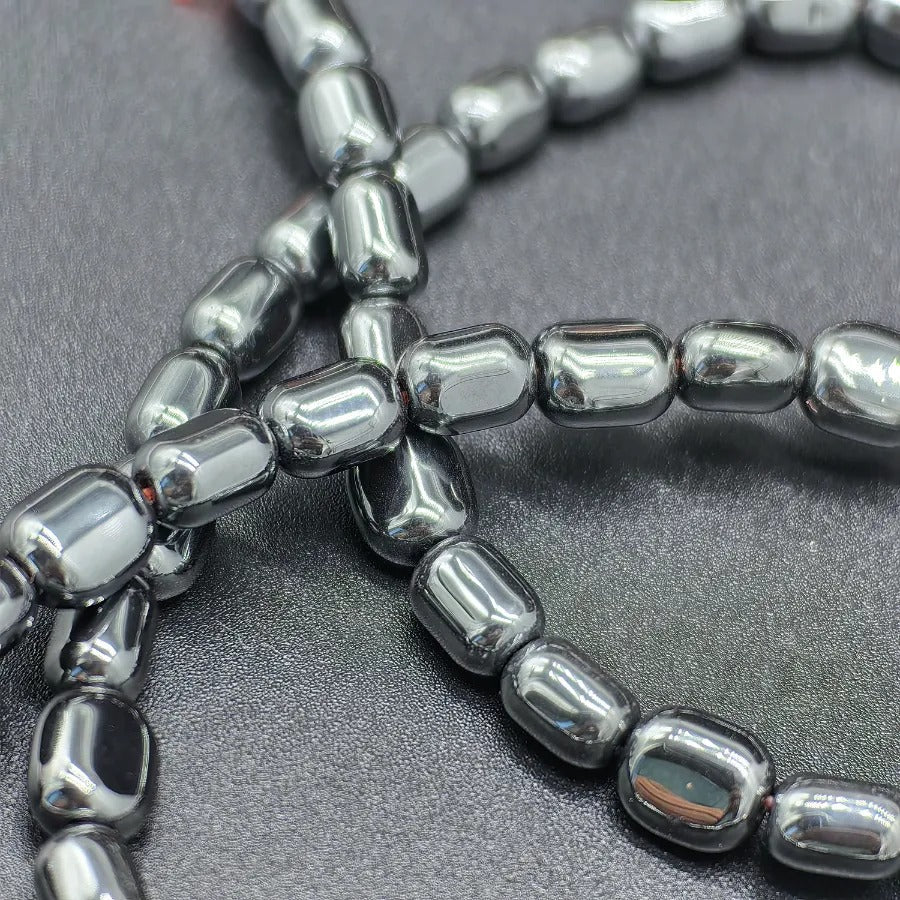 6 mm Gunmetal Flat Barrel Cut Hematite Natural Stone.Dimensions: 4 mm x 6 mm.Sold in strands.Each strand contains approximately 60 hematite stones.It is a natural hematite stone.Hematite is a shiny natural stone with a metallic appearance, believed to affect the root chakra.It is thought to provide energy, courage, and joy to the user while relieving stress.Hematite stones can be used in the design of bracelets, necklaces, and earrings.