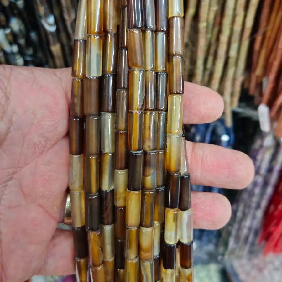 5 MM Cylinder Cut Brown Agate Natural Stone Strand. Price per strand. Approximately 28 stones per strand. Natural stones may contain different patterns veins and colors depending on their source. Small color differences may occur due to light and camera settings.