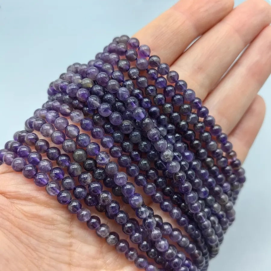 6 mm Amethyst Quartz Sphere Cut Natural Stone Strand. Price per strand. Approximately 64 stones per strand. Natural stones may contain different patterns veins and colors depending on their source. Small color differences may occur due to light and camera settings.