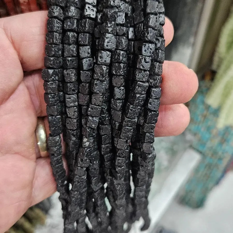6 mm Cube Cut Lava Natural Stone Strand. Strand price. Approximately 60 stones per strand. Natural stones may contain different patterns veins and colors depending on the source. Colors may vary slightly due to light and camera settings.