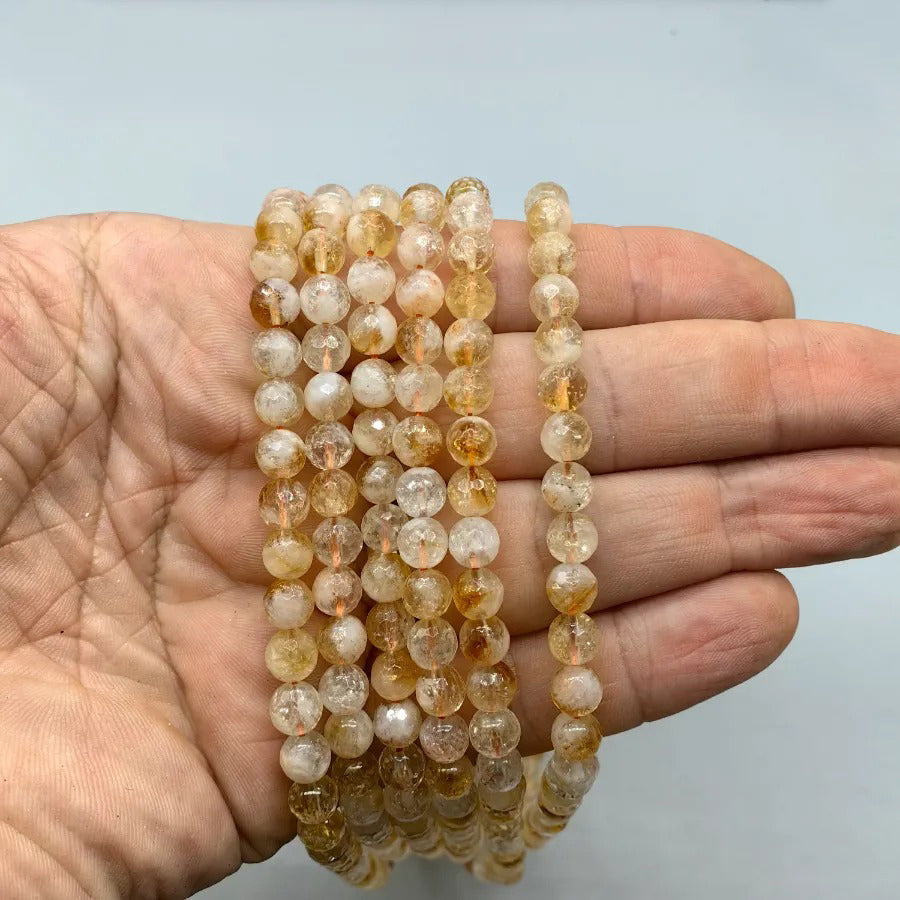 6 mm Faceted Citrine Round Cut Natural Stone Strand. Strand price. Approximately 64 stones per strand. Natural stones may contain different patterns veins and colors depending on the source. Colors may vary slightly due to light and camera settings.