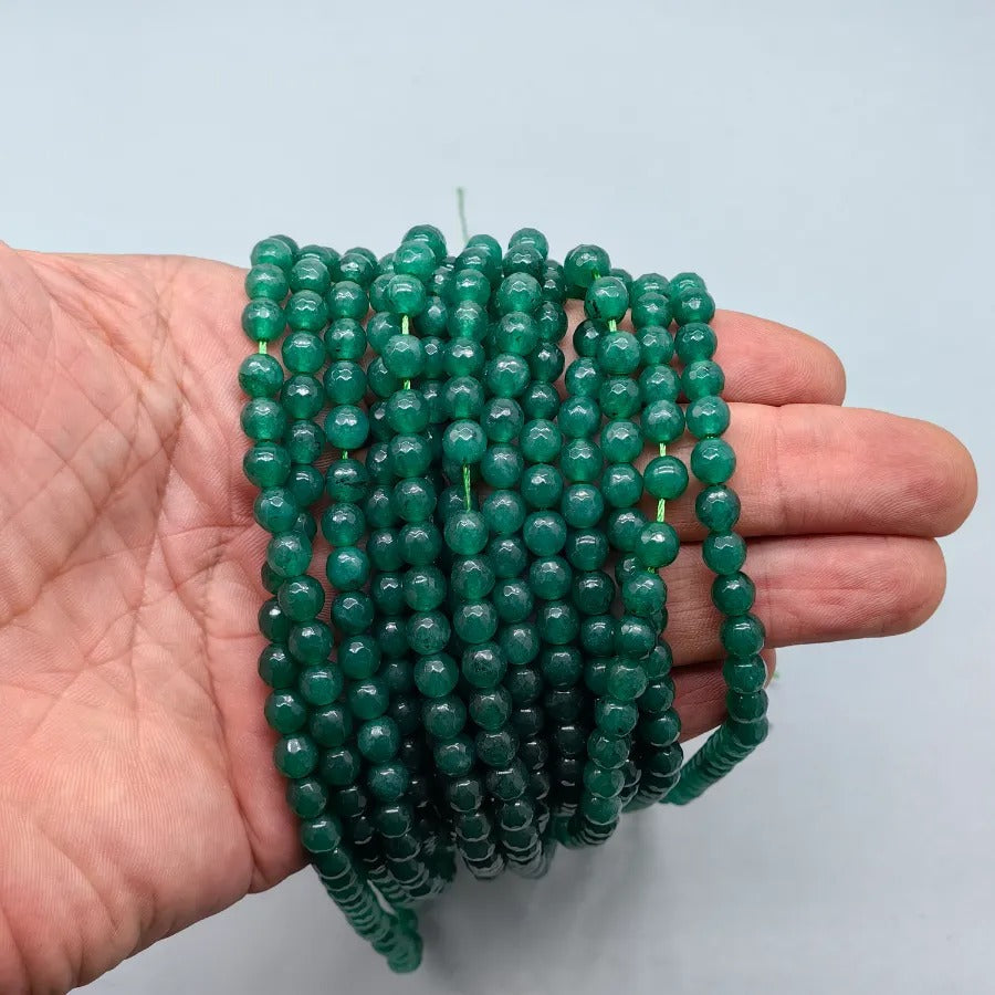 6 mm Faceted Diopside Jade Natural Stone Strand. Strand price. Approximately 64 stones per strand. Natural stones may contain different patterns veins and colors depending on the source. Colors may vary slightly due to light and camera settings.