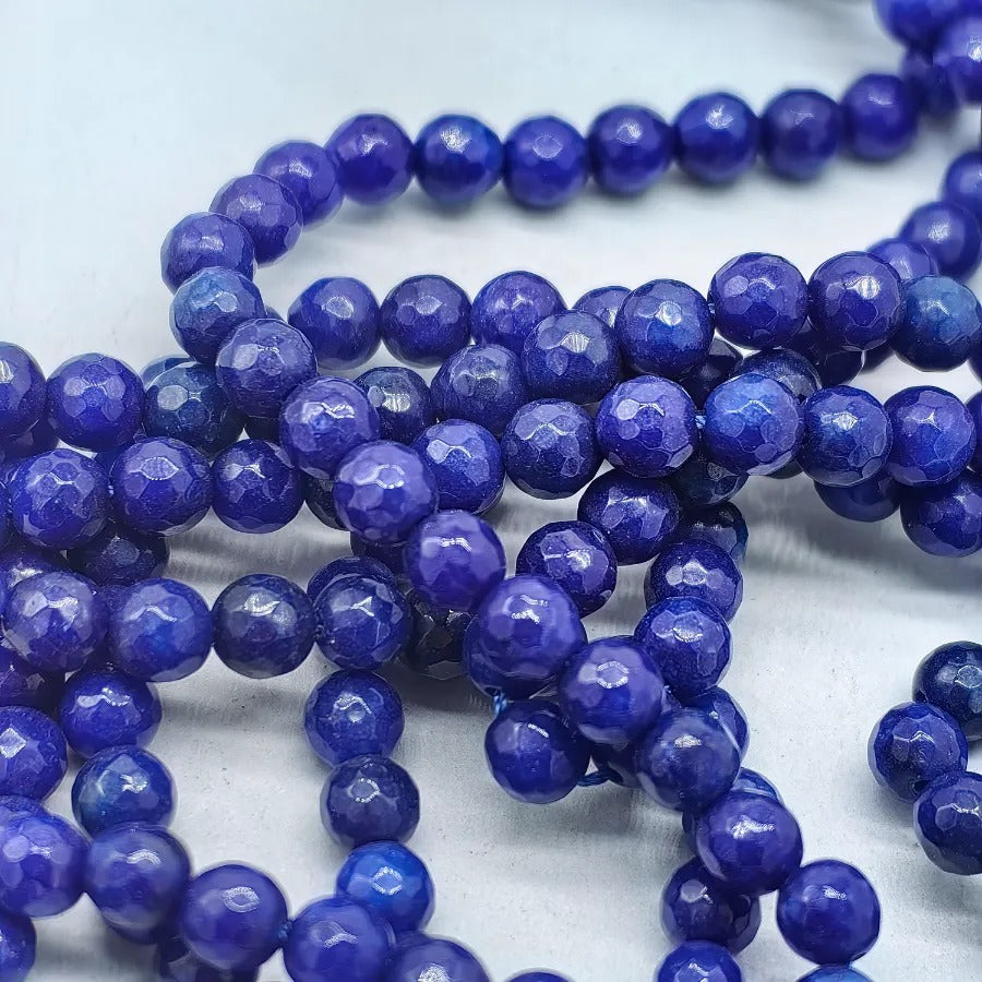 6 mm Faceted Lapis Jade Natural Stone Strand. Strand price. Approximately 64 stones per strand. Natural stones may contain different patterns veins and colors depending on the source. Colors may vary slightly due to light and camera settings.