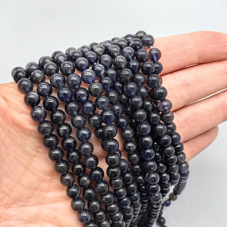 6 mm Iolite Round Cut Natural Stone Strand. Strand price. Approximately 64 stones per strand. Natural stones may contain different patterns veins and colors depending on the source. Colors may vary slightly due to light and camera settings.