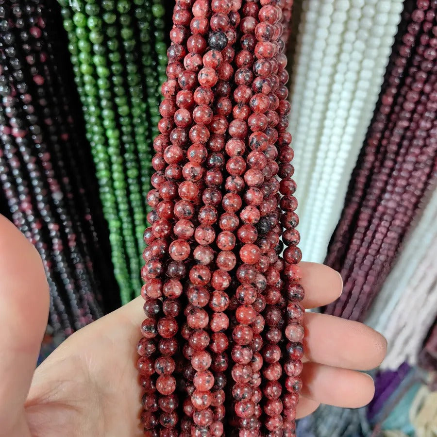 6 mm Jade Round Cut Natural Stone Strand. Strand price. Approximately 64 stones per strand. Natural stones may contain different patterns veins and colors depending on the source. Colors may vary slightly due to light and camera settings.