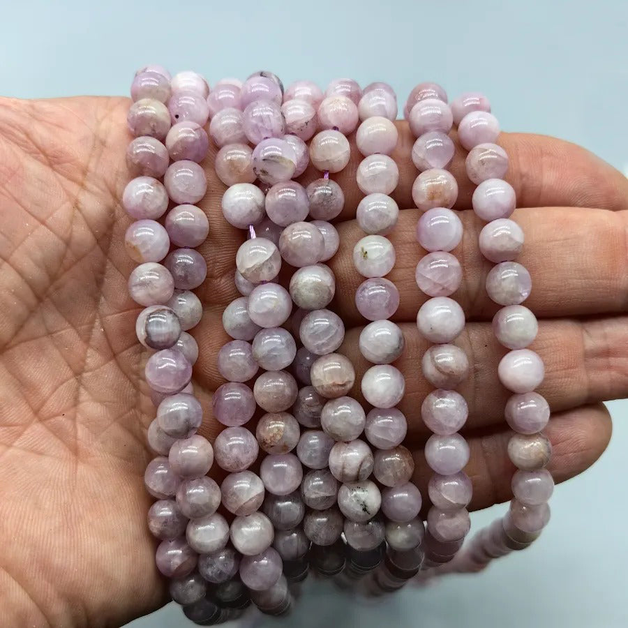 6 mm Kunzite Round Cut Natural Stone Strand. Strand price. Approximately 64 stones per strand. Natural stones may contain different patterns veins and colors depending on the source. Colors may vary slightly due to light and camera settings.