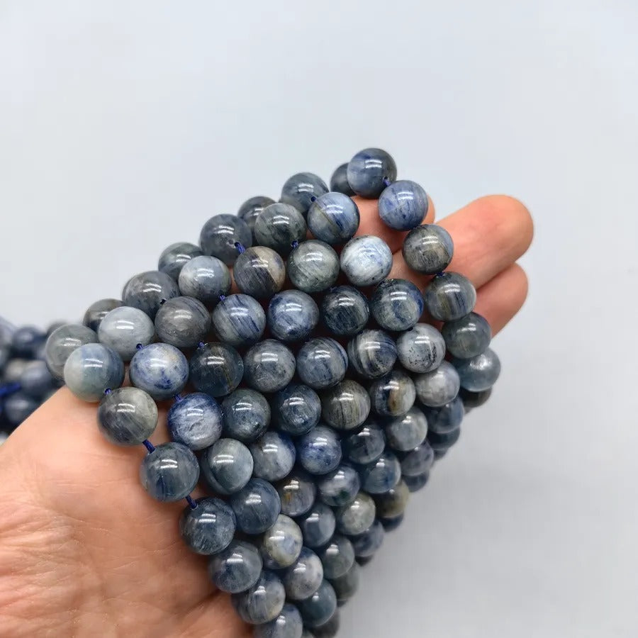 6 mm Kyanite Round Cut Natural Stone Strand. Strand price. Approximately 64 stones per strand. Natural stones may contain different patterns veins and colors depending on the source. Colors may vary slightly due to light and camera settings.