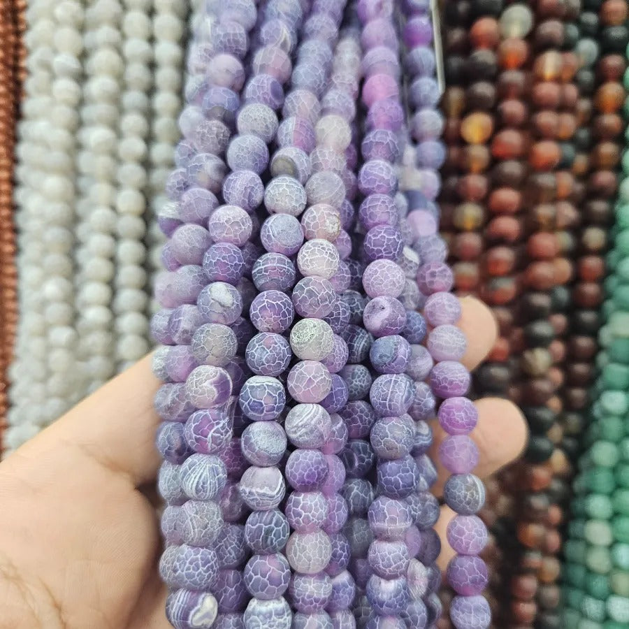 6 mm Matte Purple Agate Natural Stone Strand. Strand price. Approximately 64 stones per strand. Natural stones may contain different patterns veins and colors depending on the source. Colors may vary slightly due to light and camera settings.