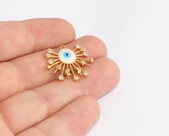 24 Carat Gold Plated White Zircon Stone Shiny Medallion Charms Medallion Pendant. Dimensions: 22x26mm Price is per piece. 24 carat gold plated on brass. A Quality product resistant to rust and tarnishing. Do not contact with chemicals and perfumes for long-term use. Passed all tests does not contain harmful materials. Colors may vary depending on screen settings and ambient light.